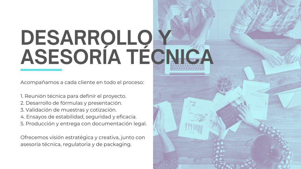 Asesoramiento integral: Te acompañamos desde la idea hasta el producto final: formulación, legislación, etiquetado, etc.